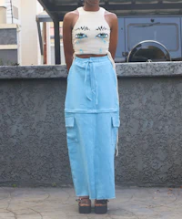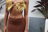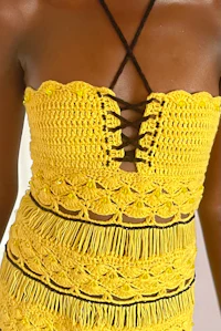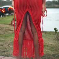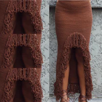 • Body-con crochet skirt with loopy detailed front centre high slit.