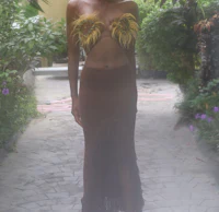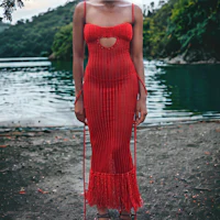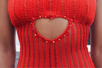 • Crochet and lace combo ankle length dress with intricate hand-beaded details and a heart cut-out.