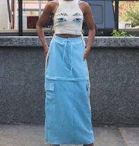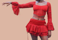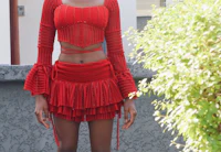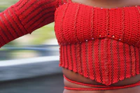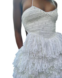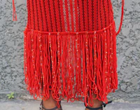 • Thick weight ankle length skirt with loopy fringe bottom and matching medium weight crop top.