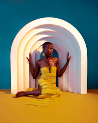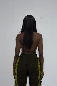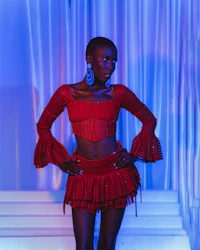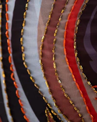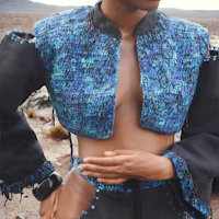 • Hand-beaded de-constructed pieces made with a combination of handwoven techniques: crochet and ‘Aso-Oke’ (handwoven African cotton fabric).