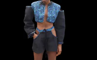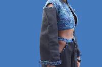 • Side cutouts on shorts with inner pockets laced with crystals.
