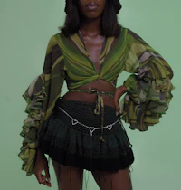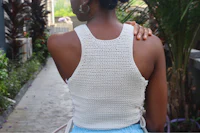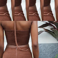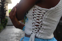 •Corset laced crochet crop top with hand-crafted flower appliqué