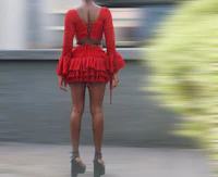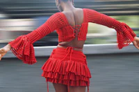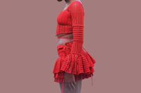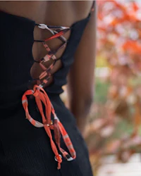 • Corset lacing at the back of the top and at the sides of the skirt.