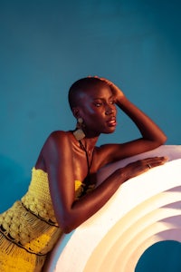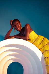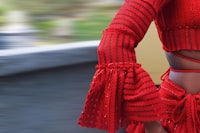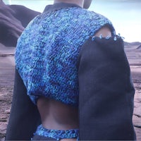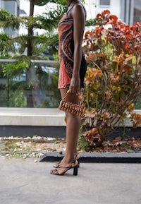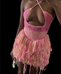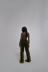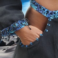• Hand-beaded de-constructed pieces made with a combination of handwoven techniques: crochet and ‘Aso-Oke’ (handwoven African cotton fabric).