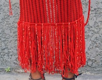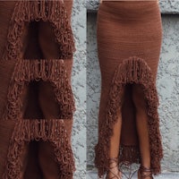 • Thick weight ankle length skirt with loopy fringe bottom and matching medium weight crop top.