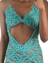 • Crochet and lace combo ankle length dress with intricate hand-beaded details and a heart cut-out.